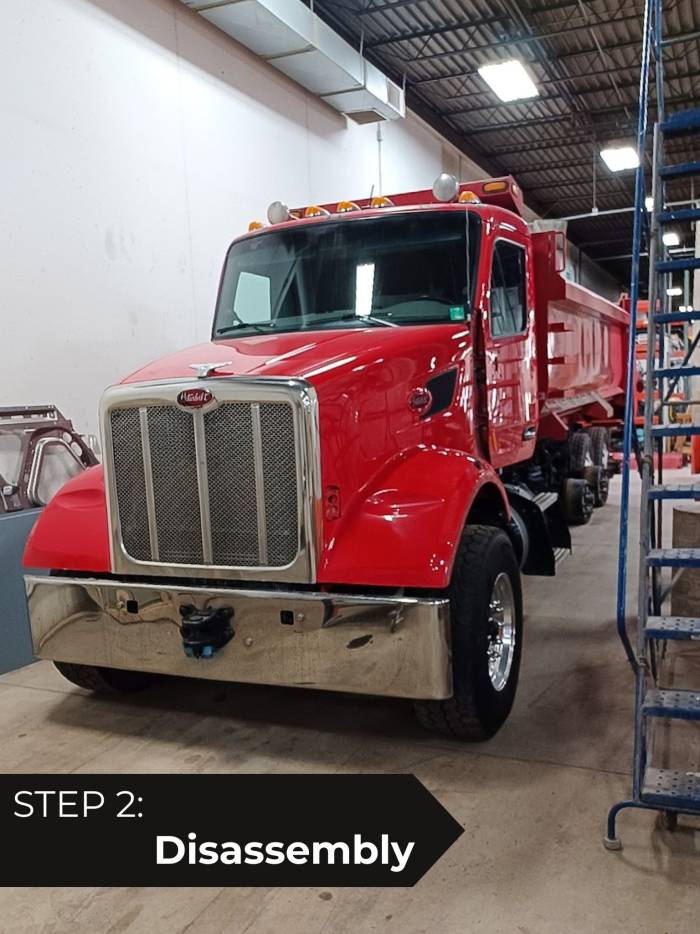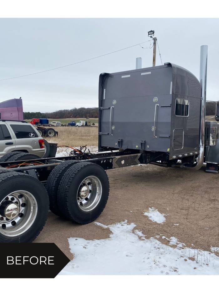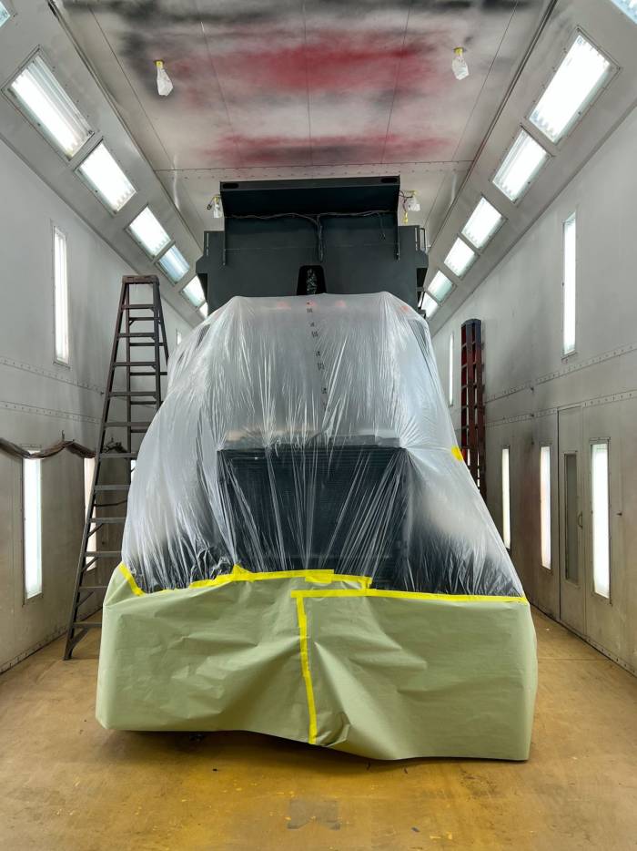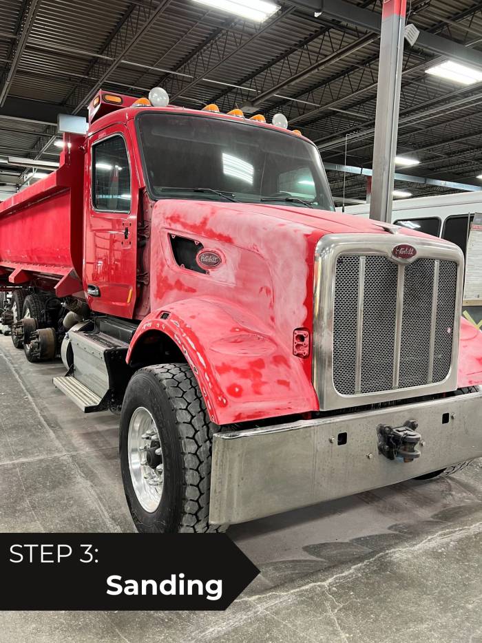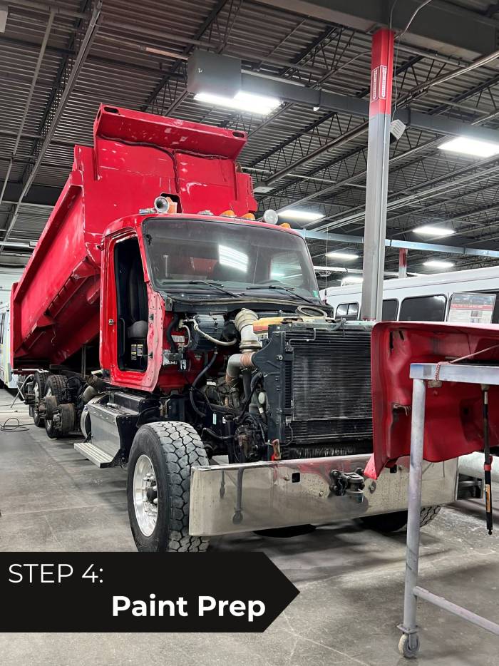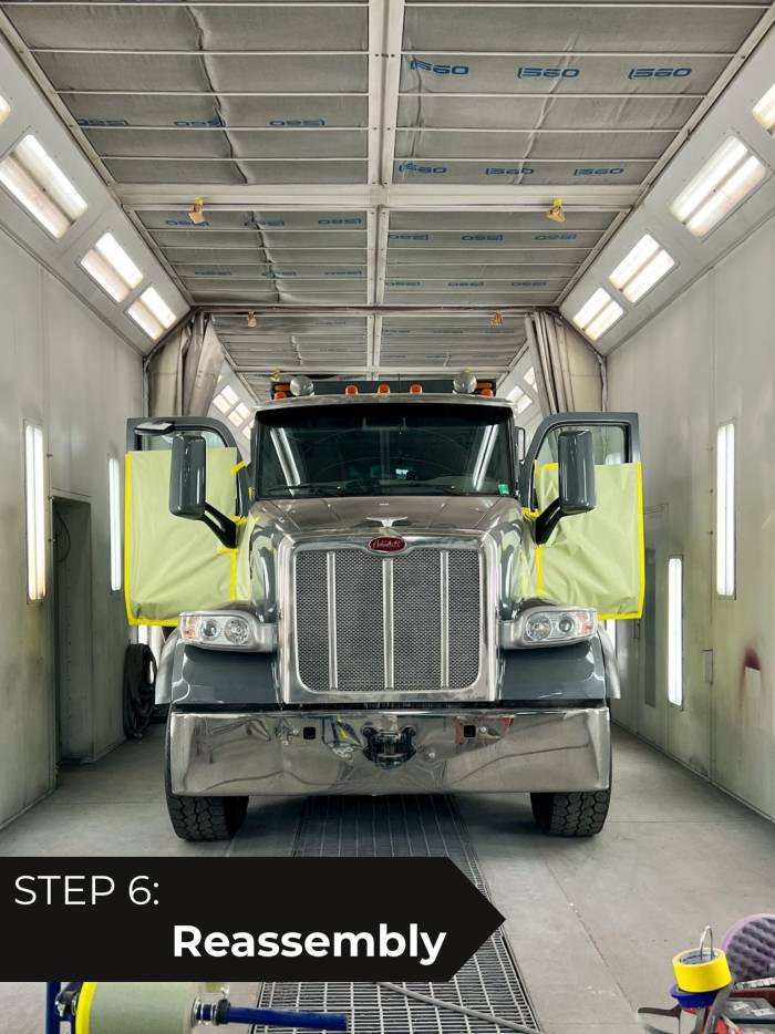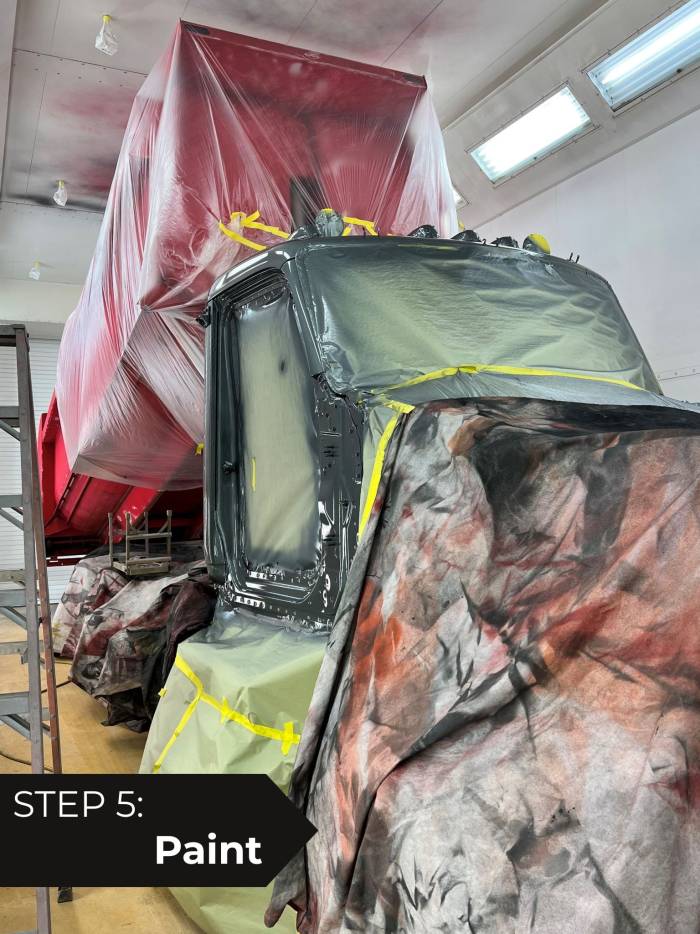 Next, the process of painting begins. This is typically done in sections—the cab, parts/ hood/doors, and box.